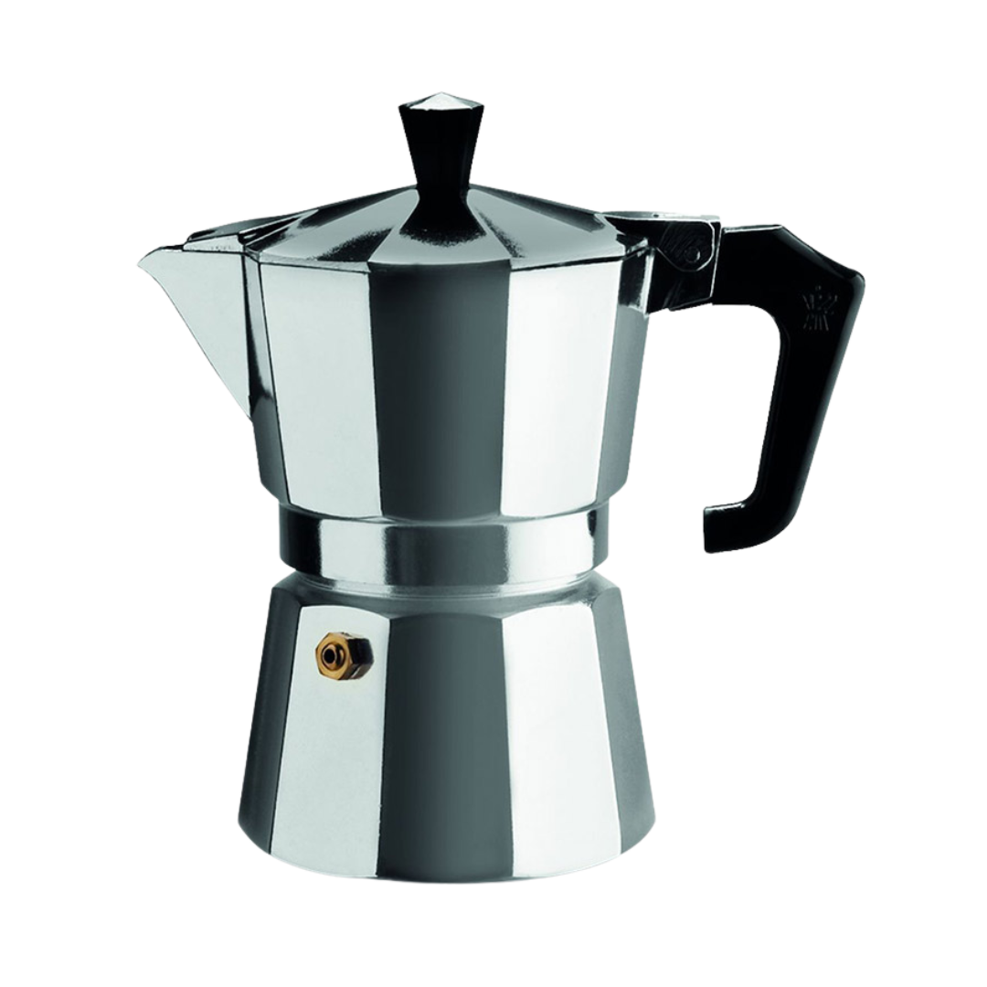 High quality Moka Pots for crafting traditional Italian espresso. Eight sided shape diffuses heat evenly to enhance the aroma and taste of the coffee.